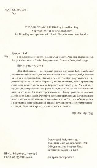 «Бог Дрібниць» — це перший роман Арундаті Рой, індійської письменниці та громадської актівісткі, який одразу здобув світове визнання і отримав Букерівську премію. Події розгортаються в південноіндійському штаті Керала, у мальовничому, але й грузькому світі невеликого містечка на берегах могутньої ріки. У світі каст, традицій, комуністичного руху, занедбаної краси та понівечених людських доль. На строкатому тлі Амму, розлучена молода матір двох близнюків, Рахелі та Ести, повернулася до батьківського дому і якось уночі покохала чоловіка, якого її діти любили удень. І порушила основоположні закони функціонування тамтешньої громади. І була покарана, разом зі своїми дітьми.