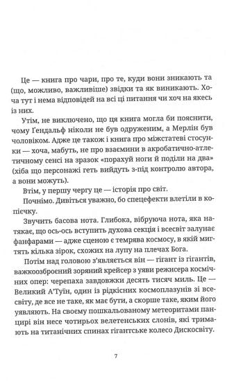 Написаний у тонкій сатиричній манері роман «Право на чари» – це своєрідна спроба відомого своїми інтелектуальними головоломками Террі Пратчетта розхитати типовий для фентезі поділ магії на «високу чоловічу» і «приземлену жіночу». Це також своєрідний маніфест рівноправ'я – кожен і кожна в Дискосвіті має право творити правдиві чарі.