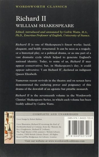 Richard II is the seventeenth volume in the Wordsworth Classics' Shakespeare Series, in which each volume has been freshly edited by Cedric Watts.