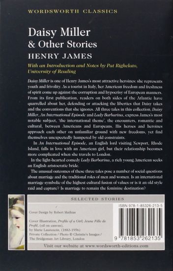 Daisy Miller is one of Henry james's most attractive heroines: she represents youth and frivolity. As a tourist in Italy, her American freedom and freshness of spirit come up against corruption and the hypocrisy of European manners. From its first publication, readers on both sides of the Atlantic have quarrelled about her, defending or attacking the liberties that Daisy and takes the conventions that she ignores. All three tales in this collection, Daisy Miller, An International Episode and Lady Barbarina, express james's most notable subject, 'the international theme', the encounters, romantic and cultural, between Americans and Europeans.