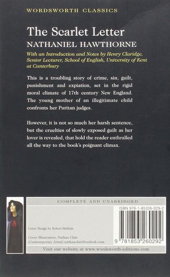 This is a troubling story of crime, sin, guilt, and punishment expiation, set in the rigid moral climate of 17th-century New England. The young mother of an illegitimate child confronts her Puritan judges.
