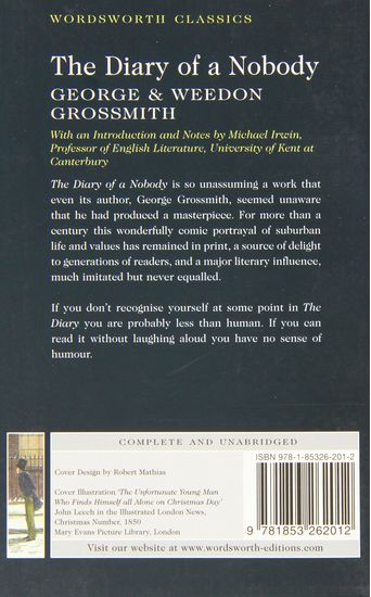 The Diary of a Nobody is so невибагливий a work that even its author, George Grossmith, seemed unaware that he had produced a masterpiece. For more than a century this wonderfully comic portrayal of suburban life and values has remained in print, a source of delight to generations of readers, and a major literary influence, much imitated but never equalled.