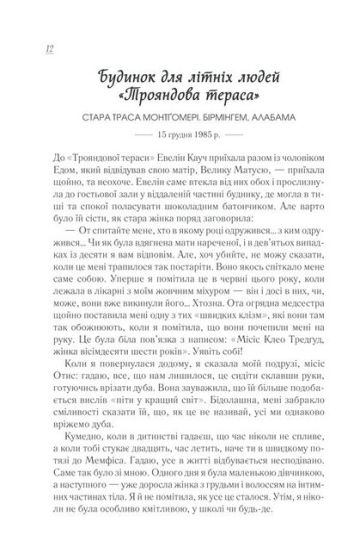 Евелін переживає глибоку особисту кризу. Вона знайомиться зі старенькою Нінні, яка, попри важку долю, не втрачає жаги до життя. Нінні розповідає Евелін історії їхнього містечка: про дівчину, яка після загибелі брата знаходить сили жити далі; про розбите серце красуні Рут; про мандрівного робітника, який закохався в Рут; про безробітних, яких у кафе «Зупинка» годували безкоштовно... Ці історії мають таку силу, що змінюють на краще життя тих, хто їх читає.