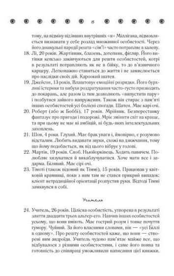 Цього ранку він прокинувся від того, що лягаві вдерлися в будинок і звинуватили у зґвалтуванні трьох жінок. Але він упевнений, що не робив цього! Принаймні не пам’ятає. Але чому? Можливо, якась із двадцяти трьох особистостей, що мешкали у його свідомості, замовчувала цей факт? Психіатри ще не стикалися з такою хворобою. Чи скоїв Мілліган усі ці злочини, чи він талановитий актор, який пошив усю Америку в дурні?