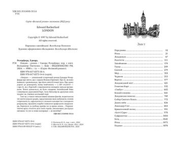 «Лондон» — захопливий історичний роман Едварда Резерфорда про місто, що є серцем Великої Британії. Про те, як воно виникло і розвивалося, про його світлі й темні часи. Про довгу дорогу до демократії, появу імпічменту — у XIV столітті! — і про те, як у боротьбі з парламентом монархи завжди програвали. Читач дізнається, як було створено Англійський банк і винайдено державний борг, чому Шекспір не друкував своїх творів і як з’явився весільний торт.