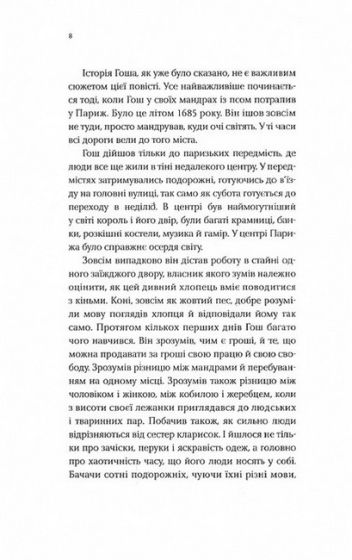 У заїжджому дворі зустрічається дуже дивна компанія: романтична куртизанка Вероніка, схильний до містицизму Маркіз, практичний банкір де Берль, німий хлопець Гош і британський джентльмен Берлінґ. Троє з них відправляться у далекі краї по Книгу, в якій вміщено всю людську мудрість. Як це часто буває, центром оповіді Ольги Токарчук виявляється слово і сила, з якою воно впливає на всіх живих.