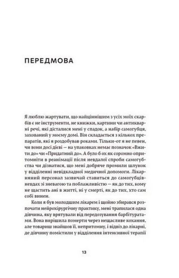 Генрі Марш — чудовий співрозмовник: випадки з хірургічної практики у Британії, Непалі, Україні перемежовуються яскравими та щемкими епізодами з його дитинства та юності, непересічними моментами професійного становлення та простими й водночас приголомшливо глибокими роздумами про те, що справді має значення.