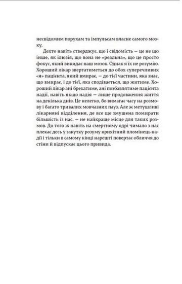 Завершуючи свою майже сорокарічну лікарську кар’єру, автор бестселера «Історії про життя, смерть і нейрохірургію» розмірковує про сенс людського існування, про суть праці лікаря, труднощі професії й про те, чим може обернутися відчайдушне бажання продовжити пацієнтові життя за всяку ціну.