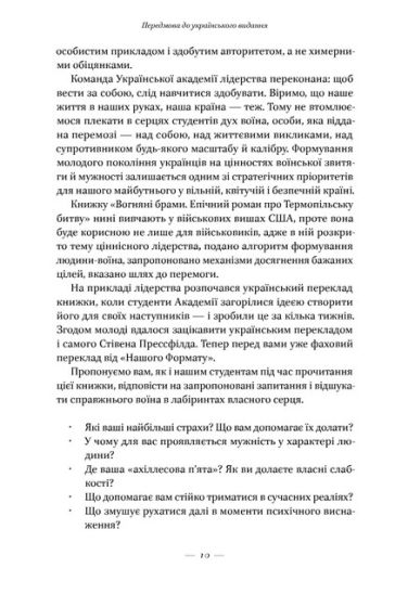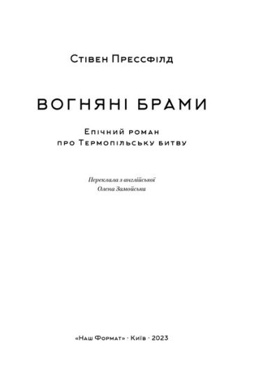 Битва під Термопілами – один із найвідоміших прикладів хоробрості, а «Вогняні брами» – один із найкращих мілітарних романів не лише про цей історичний епізод, але й про війну загалом. Про війну як вона є. Криваву, брутальну, нещадну і брудну війну, в якій дивом залишається місце для людськості, а те, що ми бачимо як героїзм, перефразовуючи слова одного з персонажів роману, – лише робота, яку треба зробити добре.
