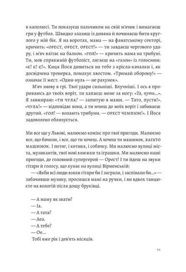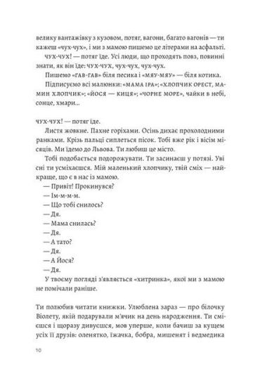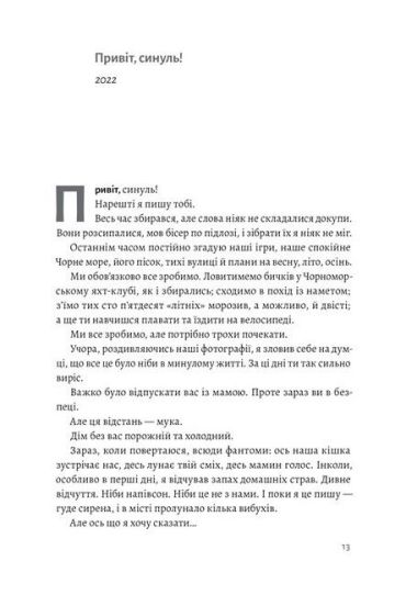 Він міг показувати сину світ, навчати і просто бути поруч. Натомість пішов захищати свою державу у російсько-українській війні. Та попри виснажливі воєнні будні головний герой не забуває бути батьком. Так виникає ця книжка — розмова із сином, який залишається далеко, але водночас завжди поруч — у самому серці.