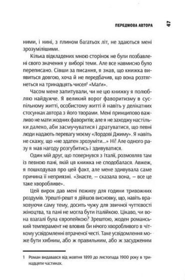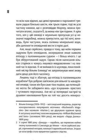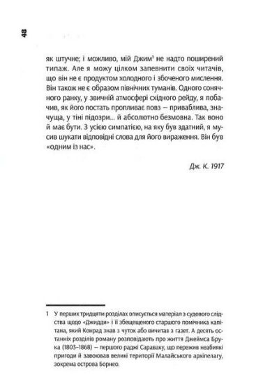 «Лорд Джим» — один з найкращих романів Джозефа Конрада, де в цілком модерністській формі він торкається тем гідності, відваги, довіри, потреби розуміння і належності до спільноти. Це історія про молодого старпома, який неочікувано для себе порушує професійний кодекс і зраджує власні принципи. Ідеаліст і романтик, нездатний примиритися зі своїми слабкостями, він шукатиме нагоди повернути втрачену гідність. Його складні вибори на борту пароплава і на островах Малайського архіпелагу відбивають дилеми, перед якими вимушена поставати майже кожна людина бодай раз у житті.