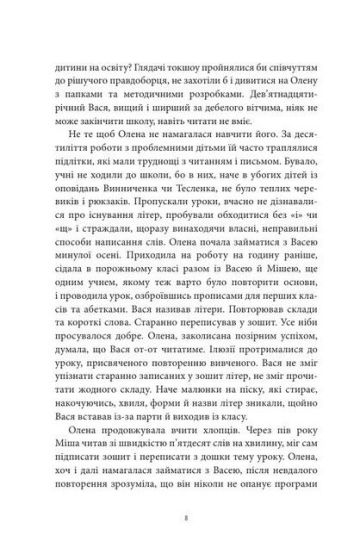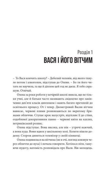 У вечірній школі можна багато кого зустріти. Двох трохи розгублених підлітків, які втікали з Афганістану в США, опинилися в Україні й живуть, як можуть. Васю, який у свої дев'ятнадцять досі не вміє читати. Школярку, яка випадково завагітніла, а тепер помалу вчиться ладнати з побутом. Здібну до математики матір трьох дітей. Усі вони – учні вечірньої школи. У кожного в минулому – білі плями, у шафах – скелети, а на думці – щасливе життя. Хто переможе – турботлива вчителька Олена Трохимівна чи невблаганна інерція долі? Дізнайтеся самі, прочитавши новий роман Ганни Городецької.