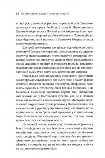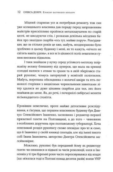 У підвалі старого будинку знайдено рукопис із описами заплутаних злочинів і моторошних історій. Безслідно зникають декілька дівчат. У річці знайдено тіло дівчини, позбавлене крові. Таємнича смерть професора медицини. Задушення секретаря консисторії. Спроби знищення Пересопницького Євангелія — символу українського народу. Каторга, страшна помста і злочин заради кохання. Загадка покарання і спасіння невинних. Надзвичайні друзі, детективи-аматори, знаходять справжніх злодіїв, але влада намагається це приховати. І все це на вуличках старої Полтави, до якої ведуть заплутані шляхи з Карпатських гір, Сибірських лісів і кількасотлітніх підземель. Книжка Олекси Доніча, написана за мотивами загадкового рукопису, проведе цими шляхами, занурюючи в атмосферу такого оманливо спокійного містечка, як Полтава на межі позаминулого й минулого століть.