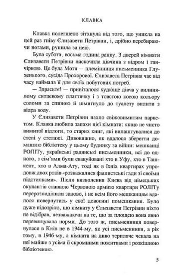 Дія роману Марини Гримич «Клавка» відбувається у Спілці письменників України і в київському письменницькому будинку РОЛІТ у 1947 році, коли відбувся сумнозвісний Пленум, відомий в історії розгромом української літератури, зокрема паплюженням Юрія Яновського та Максима Рильського. Але мало хто знає, що розправою над цими двома класиками не обмежилось: українських літераторів — колег по перу, сусідів по дому — нацьковували одне на одного, користуючись їхніми амбіціями. Учасники подій по-різному вийшли з нелегкої етичної ситуації — хто з високо піднятою головою і посмішкою на устах, а хто в ганьбі і досмертних докорах сумління.