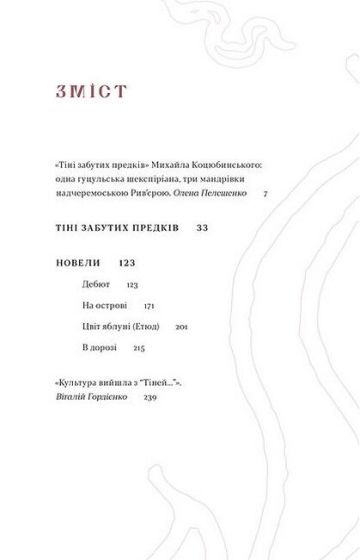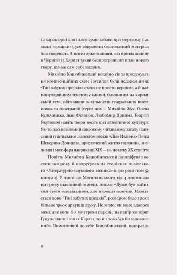 «Тіні забутих предків» — це історія кохання двох нащадків ворожих родин, таких собі українських Ромео і Джульєтти — Івана й Марічки, що розгортається посеред карпатських гір. Власне самі Карпати у цьому тексті виступають неначе окремим персонажем, переповненим легендами та духами.