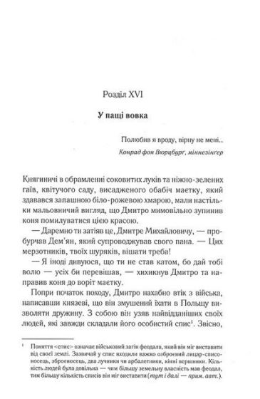Князь Любарт Ґедеміновіч і хотів би жити в мирі, та сусіди хижо позирають на його спадок. Союз Польщі й Угорщини обіцяє русинам затяжну війну. Ясновельможний володар має захистити те, що йому належить, - не тільки заради себе, а задля коханої Ольги й дитини, яку вона носить під серцем.
