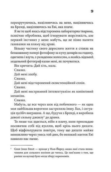 Вона була тою, якій озираються услід. Тою, про яку кажуть: «Ця сучка вхопила Бога за бороду». Красуня-фотомодель Шеннон Макфарленд мала все. Мазунчик-хлопець, блискуча кар’єра, вірні друзі. А потім… пуф! Постріл із пістолета в самісіньке гарне личко. Катастрофа, трагедія, шок… Шеннон перетворюється на потвору. Тепер вона ховається від людей і разом із колишнім хлопцем та найліпшою подругою займається грабунками та аферами. Завдяки цьому Шеннон завжди має доступ до наркотиків та сильних знеболювальних. Але вічно так тривати не може. Шеннон втомилася від невидимості. І жадає помсти. Утім, для цього доведеться стерти своє минуле. І - стерти саму себе…