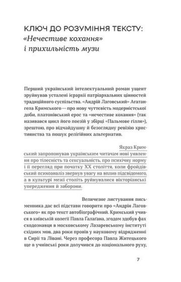 «Андрій Лаговський» — це автобіографічний роман, що став одним із ключових текстів українського модернізму та порушив табу на публічне обговорення таких тем, як сексуальна орієнтація і право бути собою. У центрі сюжету інтелектуал, книжник, професор, що постійно рефлексує над своїми станами, бажаннями, почуттями та намагається вижити у традиційному суспільстві. Важливим елементом сюжету стає гомосексуальна орієнтація героя. Це історія про роздвоєність і самотність. Він шукає любові, але не серед жінок, а серед чоловіків, шукає сімейного щастя, вірить у високі ідеали, які руйнуються, прирікає себе на кабінетне схимництво й аскетизм, але не витримує спокус. Зрештою Лаговський залишається надто залежним від тягаря традицій чи попросту нездатним до рішучого бунту, але виборює собі можливість зоставатися «таким, як він є».