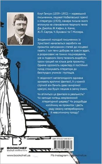 Злиденний молодий письменник із Христіанії намагається заробити на прожиток написанням статей до місцевої газети. І хоч теми добирає не зовсім вдалі, а розраховані на тонких поціновувачів, усе ж подеколи йому таланить видобути трохи грошей на кілька днів прожитку. Одначе одіозність характеру й постійний голод спонукають літератора до безглуздих учинків і пустощів. У свідомості напівголодного одинака зринають еротичні фантазії й у кожній стрічній він бачить ідеал вимріяної красуні, яка буцім мешкає в замку Ілаялі. Чи втілиться ця фантазія в реальність? Чи напише митець незрівнянний літературний шедевр? Чи роздобуде копійчину на прожиток і дасть раду своєму непереборному й невситимому голоду?