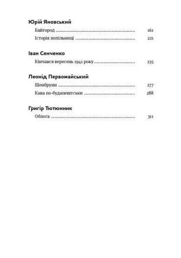 До антології увійшли тексти на довколавоєнну тематику Г. Косинки, Л. Первомайського, В. Підмогильного, І. Сенченка, О. Слісаренка, Г. Тютюнника, М. Хвильового, Ю. Яновського. У них висвітлено атмосферу громадянської братовбивчої війни, червоного терору, навали гітлерівських нацистів і наслідки фашистської політики для всієї Європи, а також поневіряння дітей війни, відірваних від коріння й батьківської землі.