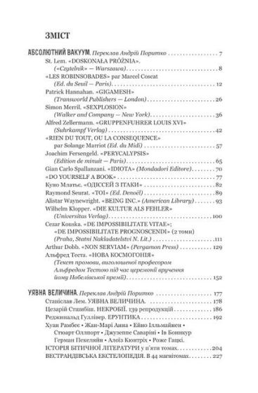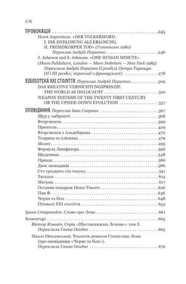 До третього тому «Лемового шестикнижжя» увійшли «літературні апокрифи» письменника, що являють собою передмови до ненаписаних книг і рецензії на неіснуючі романи, а також розмаїті науково-фантастичні оповідання, котрі не поміщені в циклах. Твори оригінальні, де у філософсько-іронічному ключі розглядаються проблеми людства в теперішньому і майбутньому, при цьому по-лемівськи незрівнянно й дотепно.