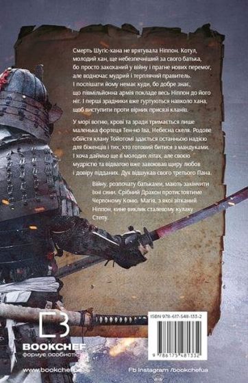 Смерть Шугіса-хана не врятувала Ніппон. Котул, молодий хан, ще небезпечніший за свого батька, бо просто закоханий у війну і прагне нових перемог, але водночас мудрий і терплячий правитель. І поспішати йому немає куди, бо добре знає, що півмільйонна армія покладе весь Ніппон до його ніг. І перші зрадники вже гуртуються навколо хана, щоб виступити проти вірних присязі кланів. У морі вогню, крові та зради тримається лише маленька фортеця Тен-но Іва, Небесна скеля. Родове обійстя клану Тойотомі здається останньою надією для біженців і тих, хто готовий битися з мандуками. І хоча даймьо ще в молодих літах, але своєю мудрістю та відвагою вже завоював щиру любов і довіру підданих. Дух відшукав свого третього Пана.