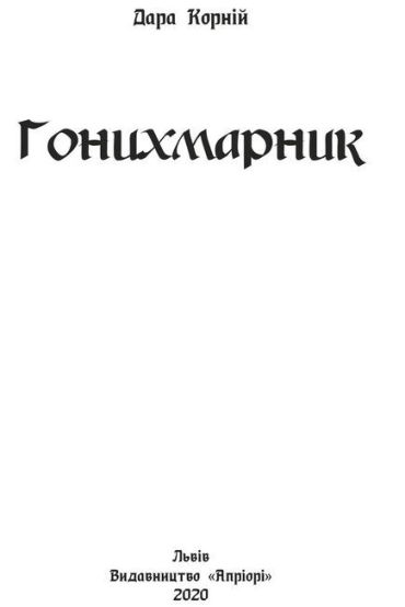 У місті, яке пахне кавою й дощами, зустрічаються він і вона… Банально? Мабуть. Приблизно так починається більшість романів про кохання. А якщо написати по-іншому: зеленокоса студентка зустрічає у сучасному Львові таємничого незнайомця, який легко закохує в себе дівчат, котрі не можуть опиратися його магнетизму. Ба більше, він розуміє мову неба, повеліває хмарами, дощами, сніговіями. Тому що він дводушник-гонихмарник. Коли ж додати, що дівчина та — не звичайна відлюдькувата дивачка, а талановита художниця з роду непро?стих, то стає зрозумілим — цей роман не тільки про кохання. У ньому органічно переплелися терпка містика, праукраїнські вірування, стара магія гір, поліські легенди, призабуте прокляття характерника та наша реальність, в якій покровитель міста святий Юрій любить гуляти дахами, лузати гарбузове насіння і переконаний, що кохання таки сильніше за долю.