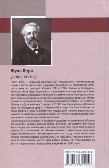Жуль Верн (1828-1905) – відомий французький письменник, популяризатор науки і автор численних наукових передбачень, переважна більшість яких на сьогодні збулися (98 зі 108). Разом із Гербертом Веллсом Жуль Верн вважається засновником жанру наукової фантастики. Важко переоцінити вплив письменника на пригодницьку та фантастичну літературу, а такі його всесвітньовідомі твори, як «П'ять тижнів на повітряній кулі», «Подорож до центру Землі», «Із Землі на Місяць», «Діти капітана Гранта», «20 000 льє під водою», «Навколо світу за вісімдесят днів», «Таємничий острів» та багато інших не лише багато в чому передбачили подальший напрям розвитку технологій та інженерної думки, а й досі бентежать та захоплюють уяву все нових і нових поколінь його читачів.