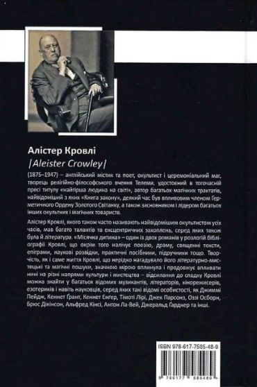 Алістер Кровлі, якого також часто називають найвідомішим окультистом усіх часів, мав багато талантів та ексцентричних захоплень, серед яких також була й література. «Місячна дитина» – один із двох романів у розлогій бібліографії Кровлі, що окрім того налічує поезію, драму, священні тексти, епіграми, наукові розвідки, практичні посібники, підручники тощо.