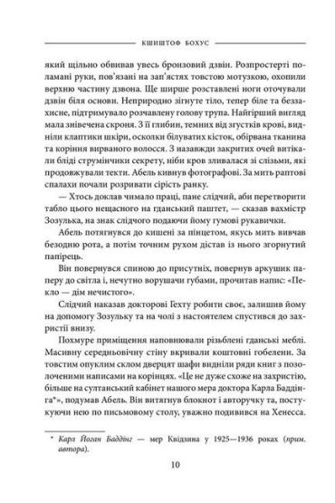 Кшиштоф Бохус (нар. 1955 р. у Квідзині) — відомий польський журналіст, оглядач, письменник. У циклі історичних детективів про слідчого Кристіана Абеля автор спробував поєднати захопливу фабулу з елементами містики, нуару і любовно-сентиментального роману з етнографічними та краєзнавчими нарисами Східного Помор’я. Його головний герой — проникливий інтелігентний поліцейський, людина широкого розумового кругозору. Він помічає речі, невидимі для інших, і завзято добивається істини.