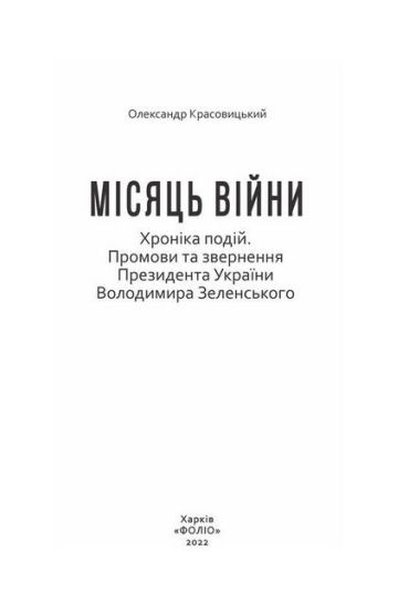 Документальна хроніка повномасштабного вторгнення Росії в Україну нагадує читачу про трагічні і героїчні події першого місяця війни. Хронологічно впорядковано публікації щоденних новин, повідомлення з офіційних джерел, промови та звернення Президента України.