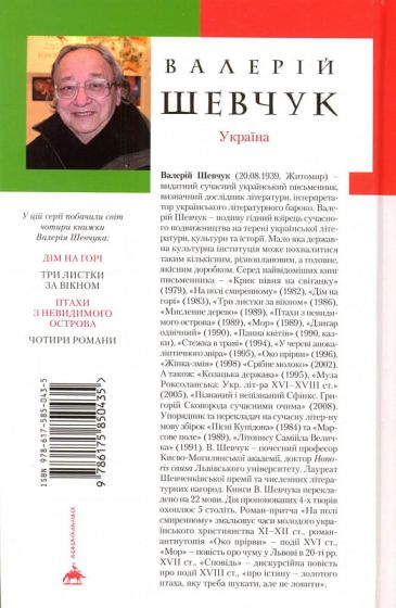 До нової книжки видатного сучасного українського письменника увійшли чотири широковідомі романи і повісті. Дія цих творів охоплює п’ять століть. Роман «На полі смиренному» змальовує події ХІ—ХІІ ст., «Око прірви» — події ХVI ст., «Мор» — про чуму у Львові в 20-ті роки ХVII ст., «Сповідь» — про події ХVIII ст. Позаяк у сучасній літературній практиці розмежування на романи і повісті не дуже виразне, наше видання для зручності має назву «Чотири романи».