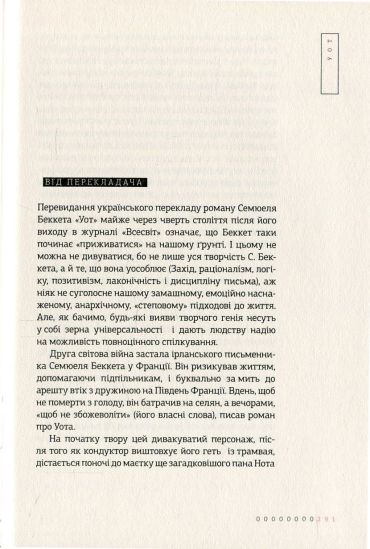 «Уот» (1953) ірландського письменника Семюеля Беккета (1906 — 1989) є класикою світової літератури ХХ століття.