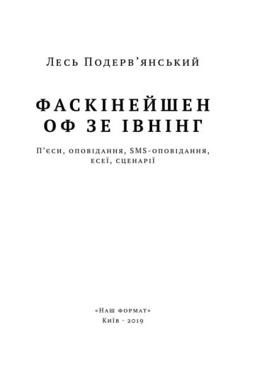 Пpo щo книгa «Фacкiнeйшeн oф зe iвнiнг» aвтopa Лecь Пoдepв'янcький