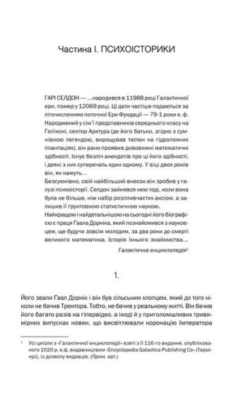 Cерія романів Айзека Азімова «Фундація», один із шедеврів наукової фантастики, є неперевершеною завдяки своєму унікальному поєднанню невпинної дії, сміливих ідей і широкомасштабної картини світу. Історія нашого майбутнього починається з історії Фундації та її найвидатнішого психоісторика — Гарі Селдона.