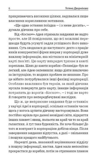 Головна героїня, дівчина на ім’я Адея, отримавши завдання за будь-яку ціну дістати дата-карту з надважливою інформацією, опиняється на межі викриття. Власник карти випадково стає свідком, власне, пограбування і намагається повернути своє. Щиро переконана, що її переслідує саме злочинець, який сам поцупив карту, Адея обходить досвідченого й вправного капітана космічної флотилії Річа Дангора. І як же здивується капітан експедиційного зореплава, коли його помічницею на чергову місію назначать саме Адею!