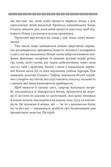 «Герої» — друга книжка автора з цього циклу. У ній він розповідає про героїв Стародавньої Греції й їхні подвиги. Блискуче переказує драматичні історії про Ясона та Геракла, Персея й Орфея, Едипа та Беллерофонта. Загадки, гонитви, битви, неймовірні головоломки, вбивства та дивовижні порятунки. Читач має змогу поринути у захопливий світ пригод зі сивої давнини. І хоча багато людей читали грецькі міфи ще в школі, у версії Фрая герої античності постають, як звичайні люди, зі суперечливими натурами, комічні, трагічні, романтичні та жорстокі. Оригінальний стиль автора інтригує і не дає читачеві відволіктися від тексту аж до кінця розповіді.
