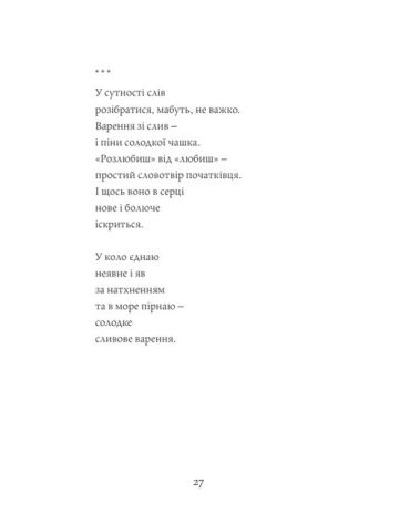 Деякі вірші були написані до війни, а деякі — під час неї, і це, по суті, історія однієї людини, доля та почуття якої можуть здатися знайомими багатьом. Людям, які жили звичайним життям, навчалися, кохали, народжували дітей. А потім дізналися, що таке війна. І ще книжка — слова подяки Богу, який завжди підтримує нас, дає надію. Усі ми стоїмо на порозі майбутнього, молимося, аби воно було мирним, аби ніхто не помер. Ми всі стоїмо на мисі Доброї Надії.