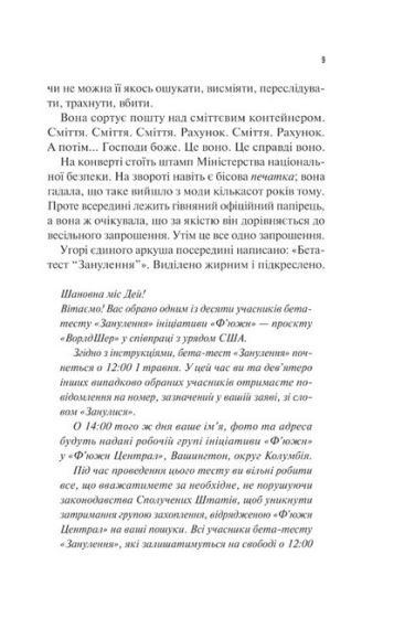 Утім, існує людина, що зацікавлена у тому, щоб усі учасники провалили завдання. Розробник програми, геній-мільярдер Сай Бакстер, у такому разі, отримає щедру винагороду та десятирічний контракт із ЦРУ. Менш за все він очікував, що гілочкою у колесі його ідеального плану стане скромна бібліотекарка Кейтлін Дей, яку всі вважали найслабшою учасницею проєкту… Чи втерла Кейтлін Дей зарозумілого носа технологічному генію, чи сюжет поверне в інший бік, дізнайтеся з книги новозеландського письменника «Занулення».