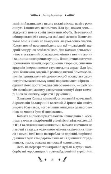 Серце професора — це енциклопедія пристрастей, прихованих за списками літератури й примітками. У «Докторі Серафікусі» воно пульсує в унісон із вибуховими хвилями історії. Воно поривається до аудиторій і бібліотек, але не може уникнути парків і модних кав’ярень, затишних ярів і диких завулків. Чи важко натрапити на хіпстерку у 1920-х роках? Що простіше — закохатися в таку дівчину чи в місто? Як залишатися українськими інтелектуалами після навали «хороших росіян»?.. Відповіді знають В. Домонтович і його химерні, зате переконливі персонажі. Один із найзагадковіших українських романів уперше друкується з розділами й фрагментами, які дивом уціліли в архіві.
