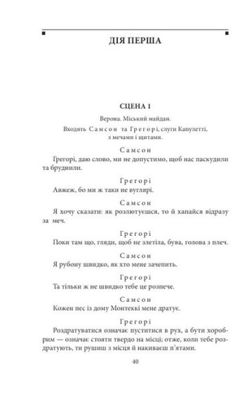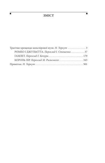 Епоха Відродження подарувала світові багато талановитих людей. Їхні імена назавжди вписані в «золоту книгу» цієї епохи. Серед них видатний англійський драматург, актор і поет Вільям Шекспір (1564–1616). Його твори перекладені багатьма мовами світу, їх часто ставлять на театральній сцені. До книжки ввійшли п’єси «Ромео і Джульєтта», «Гамлет» і «Король Лір». «Ромео і Джульєтта» — трагедія, яка не має собі рівних за глибиною проникнення в психологічну природу кохання. У «Гамлеті» автор зображує складні роздуми шляхетної людини про природу зла, про королівський двір, про лицемірство та підступність у палацових стінах. П’єсу «Король Лір» по праву вважають однією з найтрагічніших, у ній сімейні відносини тісно пов’язані з політичною проблематикою.