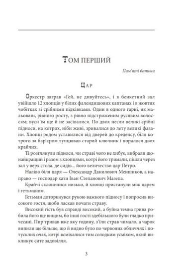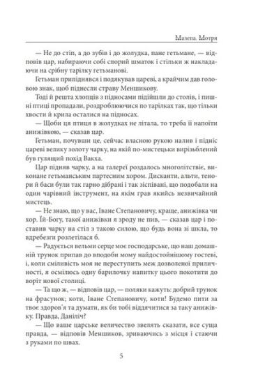 «Мотря» — перший роман циклу, в якому автор розповідає історію взаємного кохання зрілого гетьмана і юної Мотрі, доньки генерального судді Василя Кочубея. Проте романтична тема — лише тло, головні події розгортаються там, де панують імперські реалії тієї доби з підкилимними іграми та зрадами.