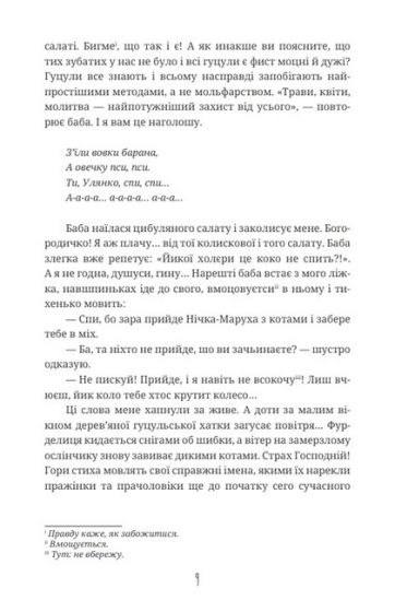 Це силянка коротких історій про гуцулку Федиху і її онучку Улянку, які разом пораються по господарству, смакують апетитними гуцульськими стравами, пишуть писанки, задобрюють русалок, ворожать на Андрія і розмірковують про життя і смерть, війну, справжнє кохання, бережне ставлення до природи. А ще це скриня з неймовірними гуцульськими казками про велетнів і їхніх дружин, Повітрулине кохання, зневажену Квітунку, страшних песиголовців і багатьох-багатьох інших дивовижних істот. Наприкінці ви знайдете рецепти смачнючих страв від баби Федихи і її онучки Улянки й поради щодо того, як поводитися, зустрівши лісовика, щезника, вовкулаку, москаля…