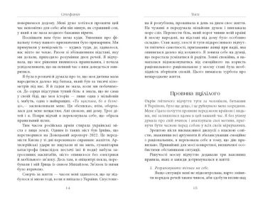 Ця книжка занурить читача в роздуми про відчайдушне протистояння добра і зла, надії і зневіри, життя і смерті під час війни. Про цілющу силу любові, яка здатна визволити нас із полону страждань. Про сенс, який неодмінно присутній у житті кожного навіть тоді, коли здається, що його втрачено назавжди.