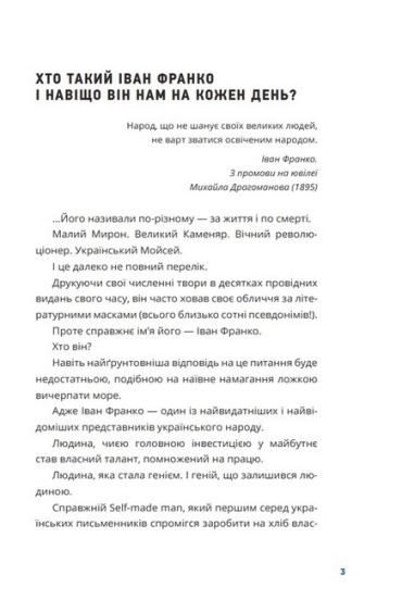 365 днів з Іваном Франком — це захоплива інтелектуальна пригода тривалістю в цілий рік. На кожен день упорядники дібрали з неосяжної спадщини славетного письменника-мислителя промовисті тексти, які дають змогу проникнути в духовний всесвіт автора «Каменярів», «Мойсея» та «Захара Беркута» — і ще кількох тисяч творів різних жанрів (поетичних, прозових, наукових, публіцистичних, епістолярних чи мемуарно-автобіографічних).
