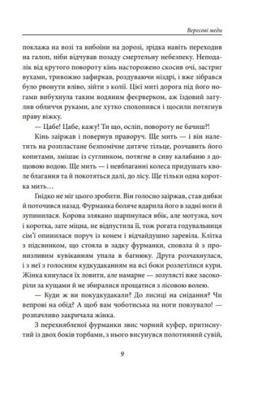 Роман «Вересові меди» — це драма, що розгортається на Поліссі в історичний період між двома світовими війнами. Богдана Ясницька, героїня роману, слідує поклику серця і не хоче йти торованими шляхами, як її родина і односельці. Заради своєї мрії вона розпочинає нове життя, втікає з рідної домівки і з власного весілля.