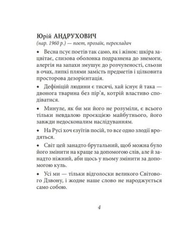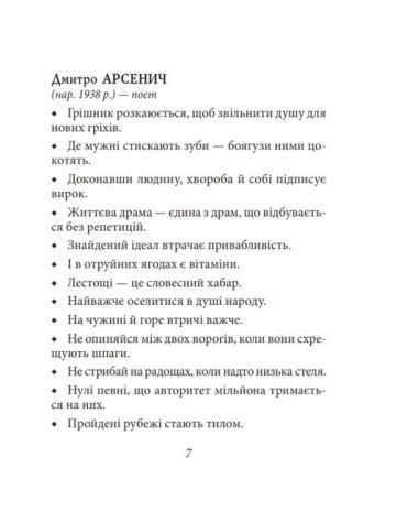 Український письменник і журналіст Володимир Голобородько сказав жартома: «Афоризм — це добре відредагований роман». У такому сенсі ця невеличка збірка — товста книжка, адже в ній зібрано висловлювання відомих українців — філософські, жартівливі, але в кожному разі — дуже дотепні.