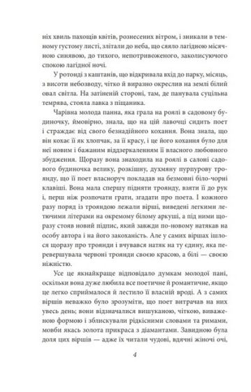 У любовних оповідках Германа Гессе, написаних упродовж 1900–1908 рр., відображені романтична природа творчості письменника та його внутрішні переживання. За словами Гессе, «кожне мистецтво починається з любові». Автор розповідає про кохання самобутньо, по-своєму, уникаючи банальних штампів. Створені ним образи відкривають цілі неймовірно складні світи із своїми законами, ідеалами й трагедіями. Герої оповідок спізнали прекрасне почуття кохання як найвеличнішу чесноту. Жінка у Гессе — душа Всесвіту, центр світобудови, втілення природи, джерело життя й вічна матір, яка все розуміє, все приймає і все прощає. Перетворюючись то на казкаря, то на людину з багацьким життєвим досвідом, оповідач відверто й правдиво ділиться дивовижними історіями з власного життя, які не залишать байдужими найвибагливіших читачів.