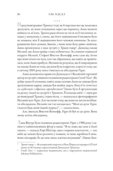 “Анна. Біографія” Емі Оделл — одна з небагатьох варіацій біографії Анни Вінтур, головної редакторки Vogue, яка стала прототипом героїні для славнозвісного фільму “Диявол носить Prada”. Емі Оделл мала власний досвід співпраці з Анною, а у процесі роботи над книгою зібрала інформацію із 250 інтерв’ю та свідчень від колег, друзів та найближчого оточення Анни Вінтур. З книги читач дізнається, що саме допомогло Анні Вінтур досягти висот, вистояти в часи криз, втримати і розвинути індустрію медіа світової моди. Авторка вибудовує сюжет довкола характеру Анни і розказує, як вона стала головною людиною світу моди та Vogue, витримавши жорстку конкуренцію з чоловіками бізнесу і політики.