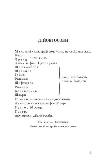 П’єса “Розбійники” — перший драматичний твір німецького письменника і філософа Фрідріха Шиллера (1759—1805). Автор зумів створити не просто цікавий твір, а художній шедевр, що назавжди увійшов до скарбниці світової літератури.